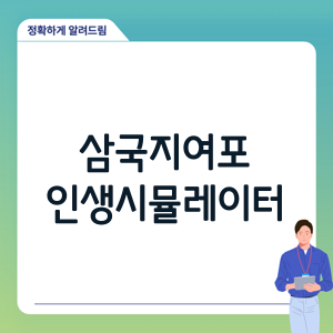 '삼국지 여포의 인생 시뮬레이터'는 삼국지 시대의 전설적인 무장 여포가 새로운 인생을 살아가는 모습을 그린 작품입니다. 여포는 "인생 시뮬레이터"를 통해 다양한 선택과 결과를 경험하게 되는데, 이 과정에서 자신의 삶을 돌아보고 성장할 수 있는 기회를 갖게 됩니다.