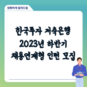 한국투자 저축은행의 2023년 하반기 채용연계형 인턴 모집은 당신의 경력 발전에 좋은 기회가 될 것입니다. 이번 채용을 통해 새로운 도전과 성장의 기회를 얻으실 수 있습니다. 관심 있으신 분들은 지원 자격과 절차를 꼼꼼히 확인하시고, 준비 과정에서 다양한 정보와 팁을 활용해 보세요.