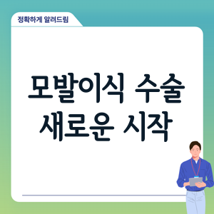 모발이식 수술을 통해 어떤 변화를 기대하고 계신가요? 이 수술은 새로운 시작을 위한 완벽한 솔루션이 될 수 있습니다. 전문의와 상담하여 자신에게 적합한 방법을 찾아보시기 바랍니다.