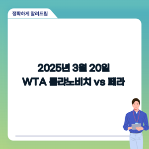 2025년 3월 20일 WTA 톰랴노비치 vs 페라 경기는 오후 2시에 시작될 예정입니다. 경기 시작 전 실시간 중계를 통해 최신 정보를 확인하실 수 있습니다.