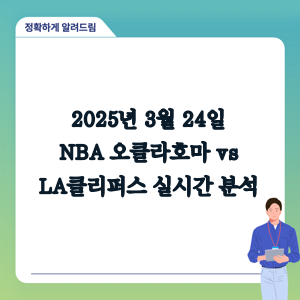 NBA 팬 오늘 우리는 2025년 3월 24일에 펼쳐질 오클라호마 vs LA 클리퍼스 경기에 대해 심도 있게 살펴보겠습니다. 이 경기는 어떤 흥미로운 전개와 결과를 보여줄까요?