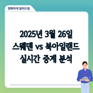 2025년 3월 26일 축구 국가대표 친선전 스웨덴 vs 북아일랜드 경기 중계는 어디서 볼 수 있나요?
