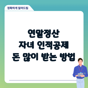 연말정산 시즌이 다가오면서 많은 분들이 궁금해하는 것이 바로 자녀 인적공제입니다. 자녀 인적공제를 제대로 활용하면 세금 환급 금액이 크게 늘어날 수 있는데, 그 방법을 제대로 알고 계신가요?