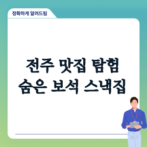맛있는 음식을 찾아 헤매는 당신, 전주에 숨어 있는 보석 같은 스낵집을 만나보시겠습니까? 이 글을 통해 전주의 숨은 맛집들을 탐험해 보겠습니다.